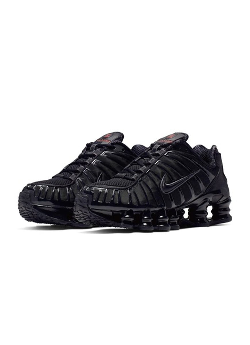 サイドにジュエルスウッシュを配置し、シュータンとヒール部にレッドカラーのアクセント施したクールな配色の【 Nike Wmns Shox Tl "Black and Max Orange"】。